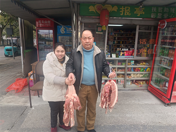 中国乡村振兴服务网讯:2026年1月28日上午,在绵阳市涪城区城厢街道建国门社区党委书记蒲陶军的安排下,社区居委会副主任刘应陪同四川好人绵州燕姐来到建国门社区,绵州燕姐亲自把香肠,水果,礼品盒和新鲜猪肉送给环卫工人和老人的手中。随后绵州燕姐又来到游仙区,由汉仙桥社区党委书记书记王兴关安排下,社区主任朱小槐陪同燕姐慰问社区农民工和困难残疾人,绵州燕姐为他们送上礼品盒,水果,香肠和新鲜猪肉。绵州燕姐又专门派车为安州区残疾人梁明洪送去了新鲜猪肉。游仙区的农民工把自己种的青菜送给燕姐以表谢意。今天的慰问活动环卫工人,农民工,老人及残疾人都非常感恩绵州燕姐的关爱和帮助,感谢燕姐以实际行动传递爱心,让我们的社会变得更加美好!都衷心的祝燕姐一生平安幸福!